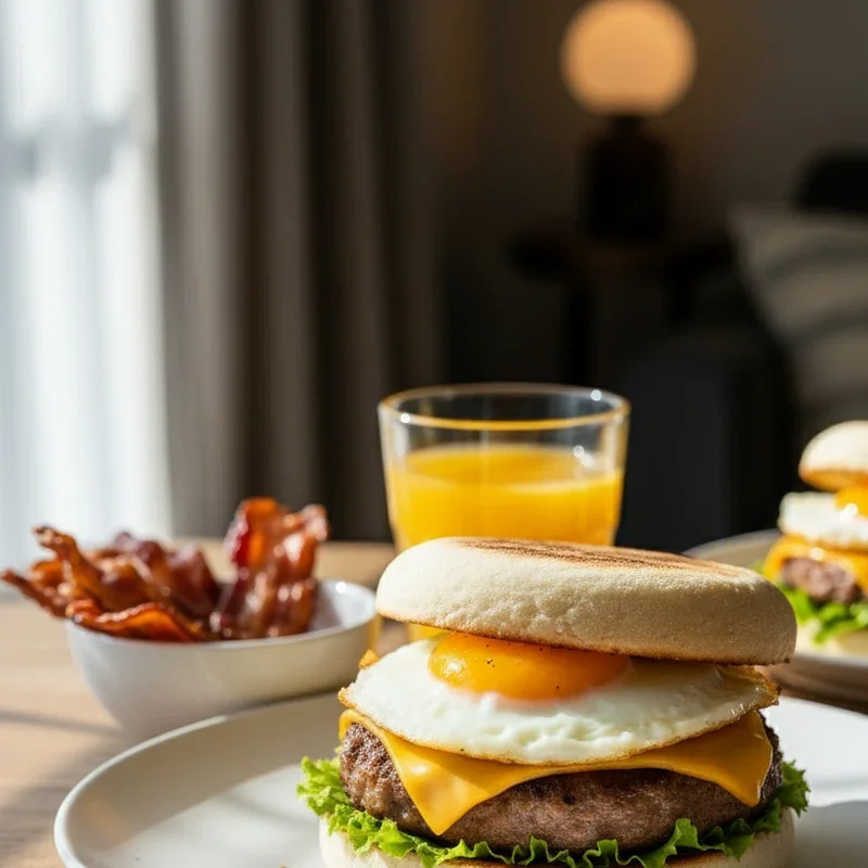 The breakfast sandwich is American efficiency at its finest, combining all the essential morning foods between two pieces of bread for maximum convenience and flavor! From the classic bacon, egg, and cheese on a roll to gourmet versions with artisan breads and specialty ingredients, this handheld meal has conquered every corner of America. The genius lies in how all the components work together; that runny egg yolk becomes a sauce, the cheese melts and holds everything together, and the bread soaks up all those delicious juices. Whether you prefer yours on an English muffin, bagel, biscuit, or croissant, there's a breakfast sandwich for every taste. Fast-food chains have built empires on these portable meals, but nothing beats making your own at home where you can pile on extra bacon and use real cheese. It's the breakfast that eats like a meal and travels like a champion!