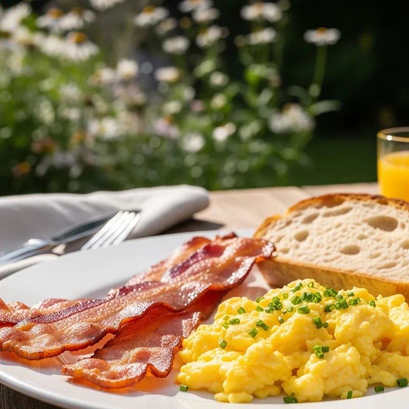 Talk about a dynamic duo that's conquered American breakfast tables! This protein-packed combination has been fueling American mornings since the 1920s when Edward Bernays literally marketed bacon and eggs as the ideal breakfast. The beauty of this classic lies in its simplicity and versatility. Those scrambled eggs can be creamy and soft or well-done, depending on your preference, while bacon offers that perfect contrast of crispy, salty goodness. The sizzle of bacon hitting the pan is basically America's morning alarm clock, and when you combine it with fluffy scrambled eggs cooked low and slow with a touch of butter, you've got breakfast perfection. Add some toast on the side to soak up those egg remnants, and you're experiencing a breakfast tradition that's stood the test of time for good reason!