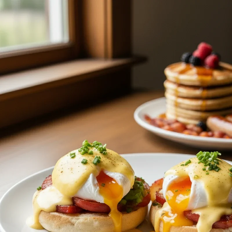 When you want to feel fancy without leaving your kitchen, Eggs Benedict is your answer! This sophisticated breakfast dish brings together English muffins, Canadian bacon, perfectly poached eggs, and that rich, velvety hollandaise sauce that makes everything feel like a special occasion. Legend has it this dish was invented in New York City, and it's been elevating American brunches ever since. Sure, poaching eggs might seem intimidating, but once you master that gentle swirl technique, you'll feel like a breakfast champion. The magic happens when you break into that poached egg and the golden yolk mingles with the buttery hollandaise, creating a sauce that's pure heaven. Many restaurants have created their own versions, from Eggs Florentine with spinach to Eggs Blackstone with tomato and bacon, proving this classic has endless delicious possibilities!