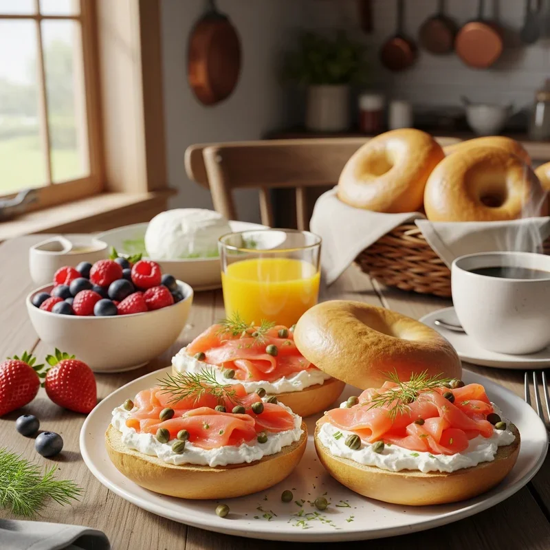 New York might have perfected it, but the bagel with cream cheese and lox has become an American breakfast icon from sea to shining sea! This Jewish-American classic brings together the chewy perfection of a toasted bagel, smooth cream cheese, and silky smoked salmon in a combination that's both luxurious and comforting. The addition of capers, red onions, and tomatoes adds layers of flavor that'll wake up your taste buds better than any cup of coffee. What makes this breakfast special is how it balances textures and flavors; you've got that dense, chewy bagel providing the perfect foundation for creamy cheese and delicate fish. Whether you prefer an everything bagel for extra flavor or keep it classic with plain or sesame, this breakfast feels like you're treating yourself to something special without breaking the bank at a fancy brunch spot!