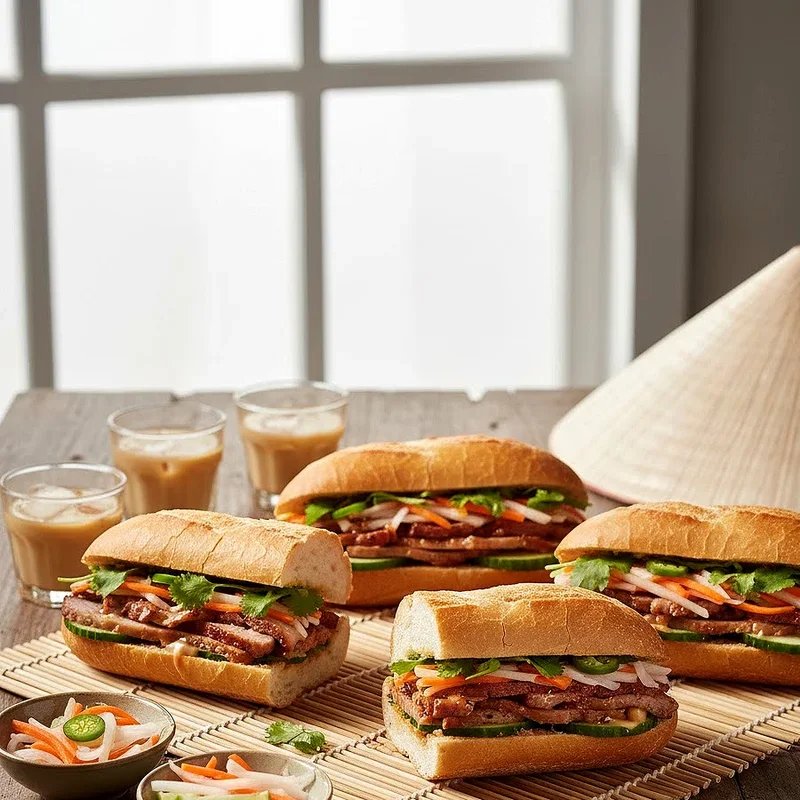 Imagine a sandwich that combines French colonial influence with Vietnamese flavors, creating a fusion that makes your typical brunch sandwich look boring by comparison. The crusty baguette houses a symphony of textures and tastes, from the savory grilled pork or chicken to the tangy pickled vegetables that cut through the richness. Fresh cilantro, jalapeños, and cucumber add brightness and crunch, while the pâté and mayo create a creamy base that ties everything together. What makes banh mi perfect for brunch is its versatility; you can prepare the components ahead and let guests build their own sandwiches. It's like having a Vietnamese deli counter right in your kitchen, where everyone becomes their own sandwich artist. This portable feast proves that great brunch doesn't require plates and forks.
