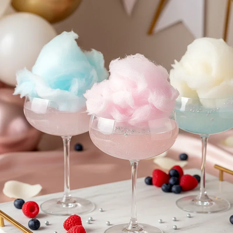 Add whimsy and wonder to your drink menu with cotton candy cocktails that dissolve into colorful, flavored magic before guests' eyes. Place fluffy cotton candy clouds atop champagne flutes, then pour prosecco or champagne over them for a mesmerizing transformation. Choose cotton candy colors matching your party theme, from classic pink to rainbow varieties that photograph beautifully. The theatrical element creates memorable moments as guests watch their drinks transform, sparking conversations and excitement. This trendy option combines nostalgia with sophistication, appealing to the inner child while maintaining adult celebration vibes. Offer non-alcoholic versions with sparkling cider or flavored sparkling water for designated drivers and non-drinkers. Set up a station where guests can customize their combinations, choosing different cotton candy flavors and sparkling beverages.