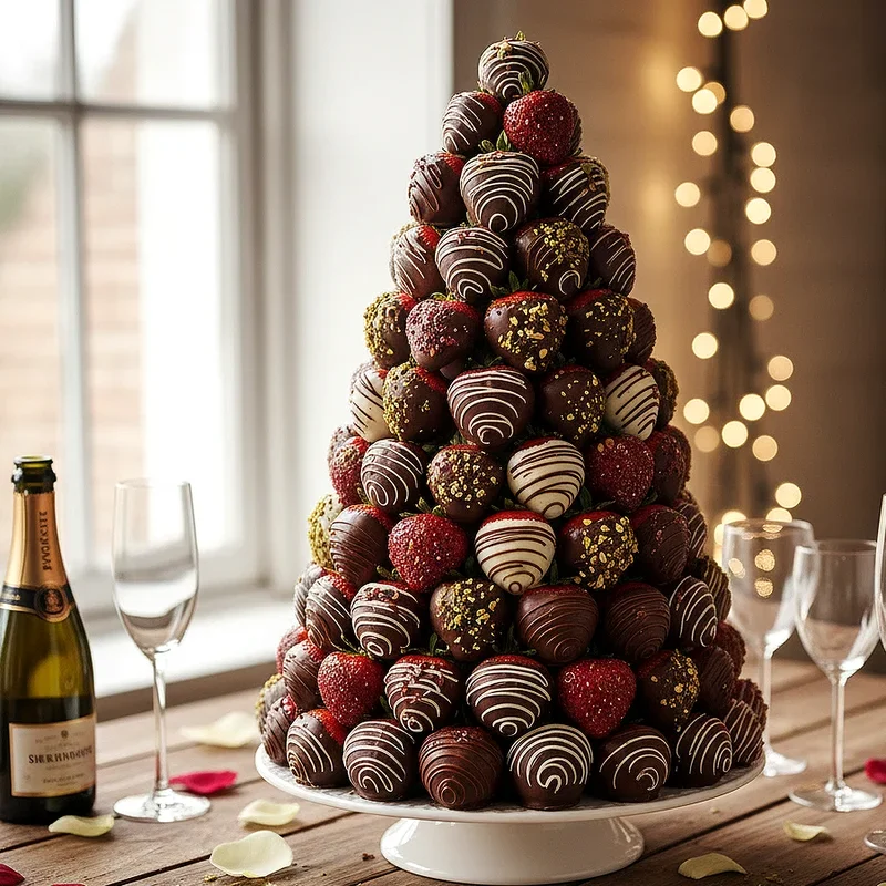 Create an impressive centerpiece that doubles as dessert with a towering display of chocolate-covered strawberries arranged artfully. This classic combination never fails to impress, offering elegance with a touch of indulgence perfect for celebrating love. Alternate between dark, milk, and white chocolate varieties, decorating some with sprinkles or drizzled contrasting chocolate for visual interest. The vertical presentation saves precious table space while creating an Instagram-worthy focal point guests can't resist photographing. Fresh strawberries provide a lighter option among heavier party foods, offering natural sweetness with antioxidant benefits. Consider adding champagne-infused chocolate for an extra special touch that ties into the celebration theme. This treat bridges the gap between healthy and decadent, satisfying diverse guest preferences.