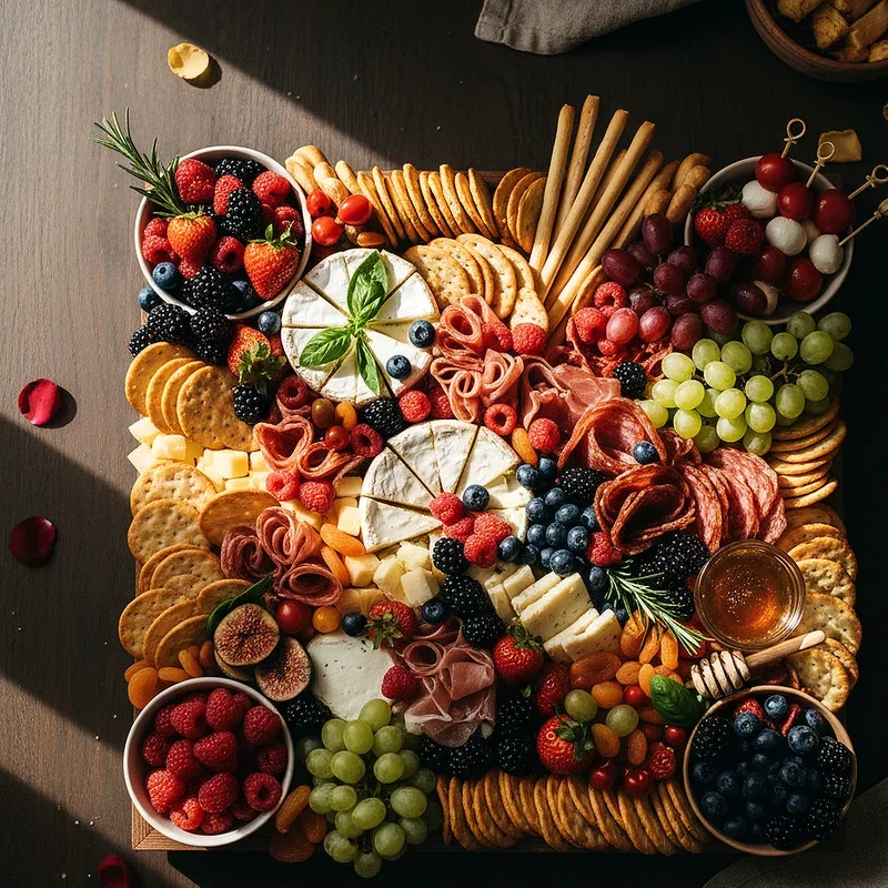 Design an impressive grazing board that becomes both entertainment and nourishment, featuring artfully arranged cheeses, meats, fruits, and accompaniments. Layer different textures and flavors from creamy brie to sharp cheddar, paired with prosciutto, salami, and other cured meats. Include fresh and dried fruits, nuts, olives, and spreads that create endless flavor combinations for adventurous guests. The visual impact of a well-styled board doubles as décor, encouraging photo opportunities and social media sharing. This option requires minimal cooking while delivering maximum sophistication that impresses even the pickiest eaters. Provide small plates and cocktail napkins, allowing guests to graze throughout the evening without committing to a full meal. The variety ensures everyone finds something they love while discovering new favorites.
