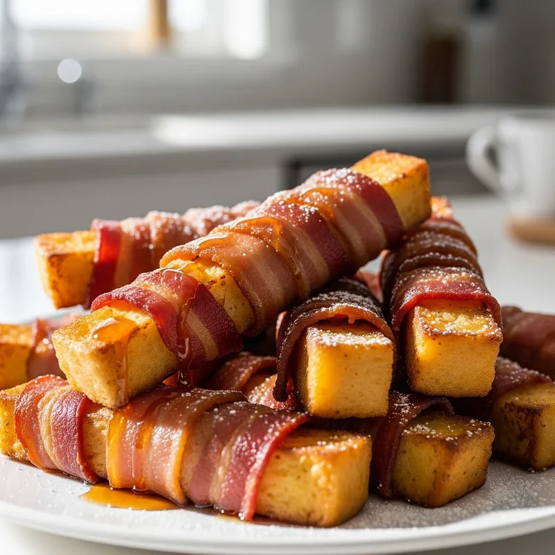 Imagine taking your favorite French toast and wrapping it in a crispy bacon embrace for the ultimate sweet and savory breakfast experience. These portable breakfast treats combine thick-cut bread dipped in cinnamon egg batter, then wrapped with bacon before hitting the oven for a hands-free cooking method. The bacon renders its fat while baking, creating an incredibly crispy exterior that contrasts beautifully with the soft, custardy French toast center. Kids and adults alike go crazy for these fun breakfast sticks that you can dip in maple syrup or eat straight from your hand. What makes this recipe particularly genius is how the bacon keeps the French toast moist while adding that irresistible smoky flavor to every single bite you take.