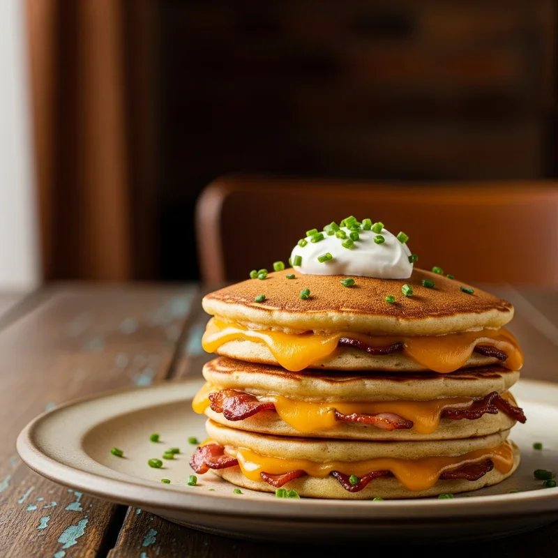 Take your pancake game to new heights by stuffing them with crispy bacon bits and melted cheese for a savory twist on this breakfast classic. The process involves making your regular pancake batter, pouring half into the pan, sprinkling bacon and cheese, then covering with more batter to create a surprise filling. When you cut into these fluffy pancakes, the melted cheese oozes out while the bacon provides little pockets of salty, crispy goodness throughout each bite. This unexpected combination might sound unusual, but once you try it with a drizzle of maple syrup, you'll never look at plain pancakes the same way again. The sweet and savory elements play together like a perfectly orchestrated symphony that'll have your taste buds singing all morning long.