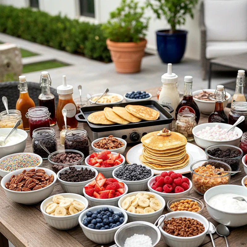 Turn breakfast into an interactive experience with a build your own pancake bar that puts creativity directly into your guests' hands. Set up a station with different pancake batters including classic buttermilk, whole wheat, and perhaps even red velvet or funfetti for the birthday theme. Arrange an array of toppings from fresh berries and sliced bananas to chocolate chips, whipped cream, various syrups, and crushed cookies. Provide squeeze bottles for guests to create fun shapes or write birthday messages directly onto the griddle. This hands on approach generates excitement and laughter as everyone becomes their own chef, experimenting with flavor combinations and decorating techniques. The pancake bar serves as both entertainment and meal, keeping guests engaged while satisfying their sweet tooth cravings. Plus, it's incredibly photogenic, making for memorable social media moments throughout the celebration.