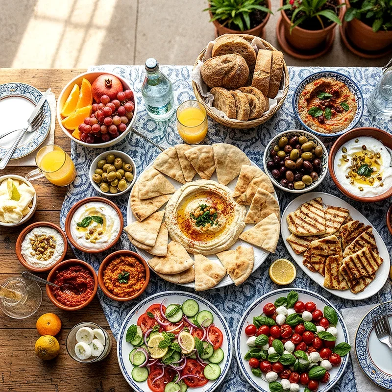 Transport your guests to the sun soaked shores of the Mediterranean with a brunch spread inspired by Greek, Turkish, and Middle Eastern cuisines. Create a stunning grazing table filled with hummus varieties, baba ganoush, fresh pita bread, olives, feta cheese, and colorful vegetable platters that invite sharing and conversation. Include heartier options like shakshuka bubbling in cast iron skillets, spanakopita triangles, and lamb kofta alongside lighter fare such as tabbouleh and Greek yogurt with honey and nuts. The communal style of dining encourages interaction and creates a festive atmosphere where everyone reaches, shares, and discovers new flavors together. Decorate with blue and white linens, terracotta pots filled with herbs, and perhaps some Mediterranean music playing softly in the background. This theme offers a sophisticated yet approachable celebration that feels like a mini vacation without leaving home.