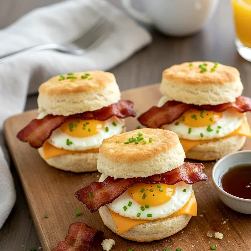 Crispy bacon tucked into fluffy biscuits creates an irresistible combination that makes mornings feel special without requiring culinary expertise. Cook your bacon until it reaches that perfect crispy texture, then arrange strips on split biscuits for instant breakfast bliss. The salty, smoky flavor pairs beautifully with the buttery biscuit base, creating balance that pleases every palate. You can add extras like sliced tomatoes, lettuce, or avocado if time permits, but the basic version satisfies completely. These sliders work wonderfully for weekend brunches or weekday grab and go situations. Prepare the bacon in advance and store it in your refrigerator for assembly in seconds. The portability factor makes these perfect for eating in transit or at your desk. Children especially enjoy the slider size, which feels manageable and fun rather than overwhelming like full sized breakfast plates often do.