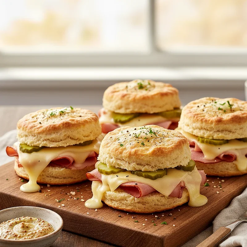 Create elegant breakfast sandwiches by layering thinly sliced ham and Swiss cheese between biscuit halves, then warming everything until the cheese melts perfectly. The mild, nutty flavor of Swiss pairs beautifully with salty ham and buttery biscuits. This combination feels sophisticated enough for adults while remaining kid friendly and approachable. You can assemble these cold for packed lunches or warm them for immediate consumption. Add a thin layer of Dijon mustard or honey mustard for extra flavor dimension without much effort. The protein from the ham provides sustained energy throughout busy mornings filled with meetings or activities. These melts work wonderfully for breakfast catering situations when you need to feed multiple people efficiently. The ingredients stay fresh longer than many breakfast options, giving you more flexibility with grocery shopping. Simple yet satisfying, these melts prove that quality ingredients need minimal fussing to shine and please diverse taste preferences across age groups.