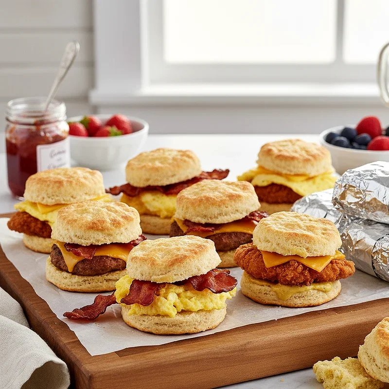 Master the ultimate time saving strategy by preparing dozens of biscuit breakfast sandwiches on Sunday, wrapping them individually, and freezing them for instant weekday breakfasts. Layer eggs, cheese, and your choice of meat between biscuit halves, wrap each sandwich in parchment paper or foil, and store them in freezer bags. When morning arrives, simply grab a sandwich, microwave it for sixty to ninety seconds, and head out the door with hot breakfast in hand. This method eliminates daily cooking while ensuring you never skip the most important meal of the day. The initial time investment pays dividends throughout the entire month. You control ingredients, portion sizes, and flavor combinations, making this healthier and cheaper than commercial frozen options. Label your sandwiches with contents and dates for easy identification. This approach reduces morning stress dramatically, transforming chaotic rushes into smooth departures. Your future self will thank you for this meal prep wisdom that combines convenience with nutrition perfectly.