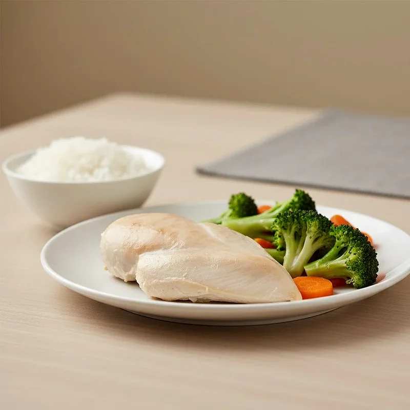 1. Plain Baked Chicken Breast with Steamed Vegetables