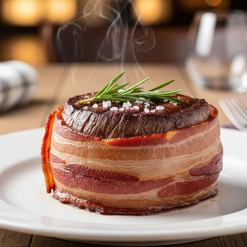 Why choose between bacon and beef when you can have both in one incredible, indulgent creation that satisfies every carnivorous craving imaginable? This show-stopping dish wraps tender filet mignon in strips of smoky bacon, creating a flavor combination that's pure carnivore heaven and represents the pinnacle of meat-on-meat innovation. The bacon adds richness and protects the lean filet from drying out during cooking while infusing it with smoky, salty goodness. Secure with toothpicks, then sear in a screaming hot pan before finishing in a preheated oven to achieve the perfect doneness. The result is a perfectly cooked steak with a bacon-enhanced crust that delivers maximum flavor in every single bite and creates a textural symphony. This dish transforms an already premium cut into something truly extraordinary that will have your guests talking about dinner for weeks to come.