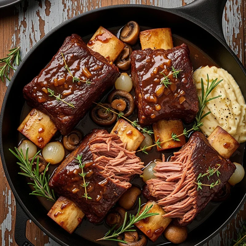Short ribs transform from tough to tender through the magic of braising, creating comfort food that warms both body and soul during cold winter evenings. These beefy cuts benefit from long, slow cooking in flavorful liquid, which breaks down tough collagen into silky gelatin that coats every strand of meat. The result is fork-tender meat that falls off the bone effortlessly, infused with rich, deep flavors from the braising liquid that penetrates every fiber. This cooking method turns an inexpensive cut into a luxurious meal that rivals anything from high-end restaurants and proves that technique matters more than price. It's perfect for cold evenings when you crave something deeply satisfying and soul-warming that fills your home with incredible aromas. The braising liquid reduces into a rich sauce that complements the tender meat perfectly and creates a complete, satisfying meal.