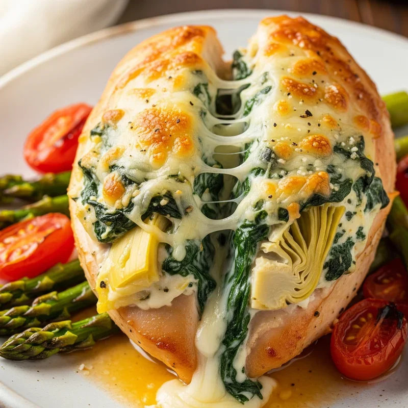 Bring restaurant-quality dining home by stuffing chicken breasts with everyone's favorite spinach artichoke dip mixture! Butterfly chicken breasts and fill with cream cheese, mozzarella, spinach, and artichokes mixed together. Secure with toothpicks and sear until golden, then finish in the oven until cooked through. The creamy filling keeps the chicken incredibly moist while adding tons of flavor inside. Even veggie-resistant kids eat spinach when it's hidden in cheesy goodness like this. Slice to reveal the beautiful spiral of filling that makes presentation impressive yet achievable. Serve over pasta or rice to catch any escaped cheese for maximum deliciousness. This elevated weeknight dinner makes family members feel special without requiring hours of preparation!