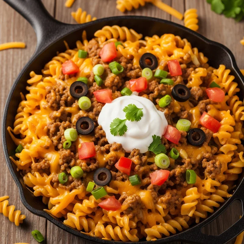 Merge Taco Tuesday with pasta night in this one-pan wonder that minimizes dishes while maximizing flavor! Brown ground beef with taco seasoning, then add pasta, broth, and salsa to cook together. The pasta absorbs all those delicious flavors while cooking, creating an incredibly tasty base dish. Stir in cream cheese and top with shredded Mexican cheese blend for ultimate creaminess. The one-skillet method means less cleanup and more time enjoying dinner with your family. Top individual servings with crushed tortilla chips, lettuce, tomatoes, and sour cream for complete taco vibes. Kids love the familiar taco flavors in pasta form while parents appreciate the quick preparation. This fusion dish becomes a weekly rotation regular immediately!