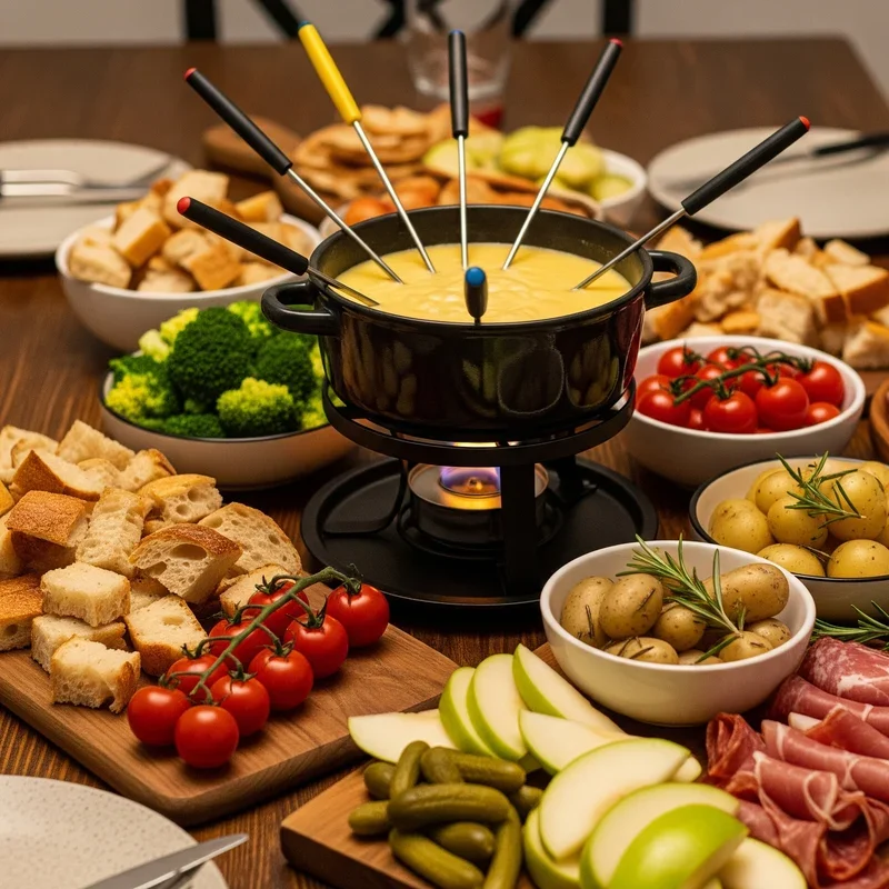 Create memorable family bonding time with interactive cheese fondue that gets everyone talking and laughing together! Melt gruyere and emmental cheeses with white wine and garlic for that authentic Swiss fondue experience. Provide various dippers like bread cubes, vegetables, apple slices, and cooked meats for variety. The shared pot encourages conversation and slows down eating for better family connection time. Kids love the novelty while adults enjoy the nostalgic throwback to fondue's heyday. Set fun family rules like whoever drops their food does dishes or tells a joke. The interactive nature means phones stay away and family members actually engage with each other. This special dinner creates lasting memories beyond just another weeknight meal!