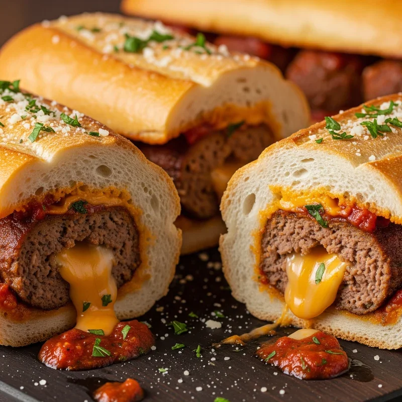 Elevate regular meatball subs by hiding mozzarella cubes inside each meatball for an explosive cheese surprise! Mix ground beef with Italian seasonings, breadcrumbs, and eggs, then wrap the mixture around cheese cubes carefully. Simmer these cheese bombs in marinara sauce until cooked through while the centers become molten perfection. Load them into toasted sub rolls and top with more mozzarella before broiling until bubbly. The first bite releases that hidden cheese center, creating instagram-worthy cheese pulls every time. Kids love the surprise element while adults appreciate the elevated take on a classic sandwich. Serve with crispy fries or a simple salad for a complete meal everyone devours. These subs make fantastic game day dinners or casual Friday night treats!