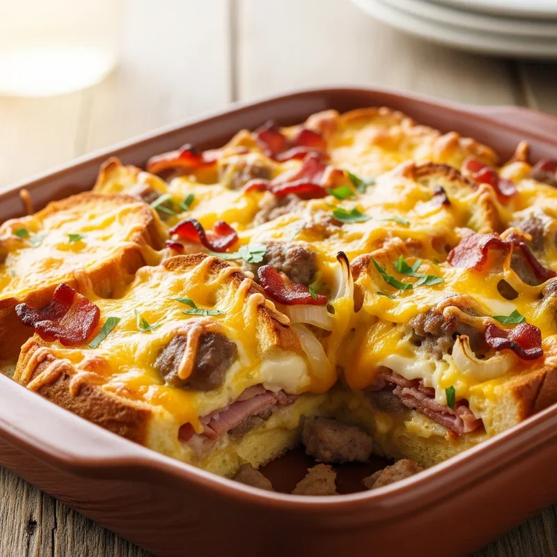 Break dinner rules by serving this make-ahead breakfast casserole that combines eggs, cheese, and bread perfectly! Layer cubed bread with sausage, multiple cheeses, and beaten eggs mixed with milk overnight. The overnight soak ensures every piece of bread becomes custardy and delicious when baked. Add vegetables like bell peppers and onions for nutrition that kids won't notice. The beauty lies in assembling it the night before, then simply baking when ready. Top with extra cheese during the last few minutes for that gorgeous golden finish. Serve with fresh fruit and hash browns for the complete breakfast-dinner experience everyone loves. This rule-breaking dinner gets everyone excited about something different and delicious!