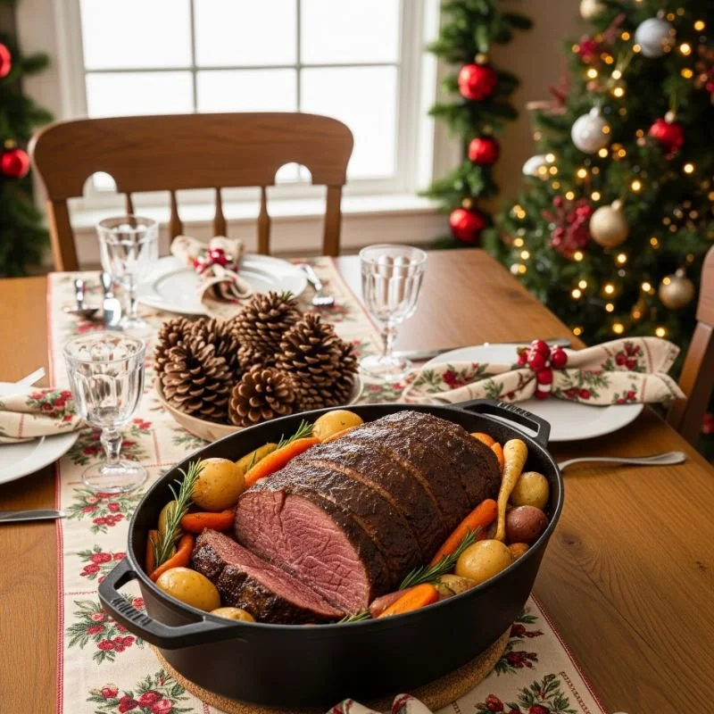 Sometimes the old ways are the best ways, and nothing says comfort like a pot roast that's been bubbling away all day. This isn't just cooking; it's alchemy. Chuck roast transforms from tough to tender through the magic of slow cooking. Brown the meat first for depth of flavor, then let it simmer with red wine, beef broth, and aromatics. Add root vegetables in the last hours so they maintain some texture. The result is fork-tender meat in a rich, flavorful gravy that tastes like love itself. This dish is perfect for busy hosts since it practically cooks itself while you handle other preparations. Serve over creamy mashed potatoes or egg noodles to soak up every drop of that incredible sauce. It's the kind of meal that creates memories and warms hearts on cold Christmas days.