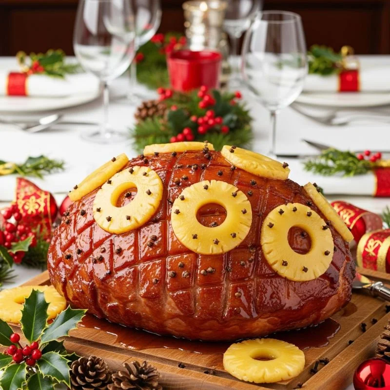 1. Classic Honey-Glazed Ham with Pineapple and Cloves