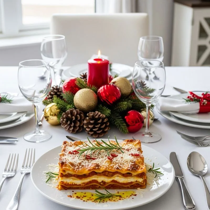 Who says lasagna can't be festive? This holiday version layers comfort and joy in every bite. Instead of traditional red sauce, use a white béchamel infused with nutmeg and fresh herbs. Layer it with ricotta, mozzarella, and Parmesan, along with sautéed spinach and roasted butternut squash for a seasonal twist. The colors alone scream Christmas! Each forkful delivers creamy, cheesy goodness with pops of vegetables that add both nutrition and flavor. This dish is perfect for feeding a crowd and can be assembled the day before, leaving you more time to enjoy your guests. Serve with a crisp Caesar salad and garlic bread for a meal that feels both familiar and special. It's proof that Italian comfort food and Christmas celebrations are a match made in heaven.