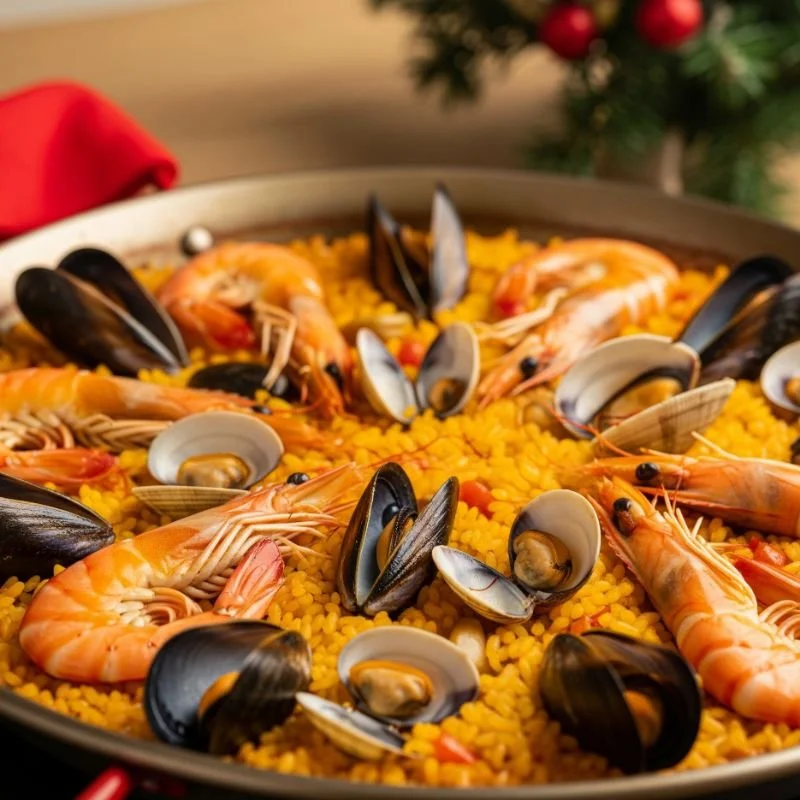 13. Christmas Paella with Seafood and Saffron