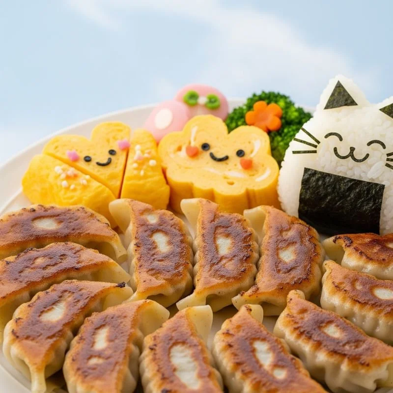 The humble gyoza receives a second appearance on our list through a variation that proves Japanese cute food culture can transform even crispy, pan-fried favorites. Yaki-gyoza with faces adds personality to the distinctive presentation of these dumplings, which are typically served connected by a lacy, crispy "skirt" created during the cooking process. Creative cooks add facial features using food-safe markers on the wrappers before cooking, or strategically place sesame seeds, nori pieces, or vegetable accents after cooking to create expressions that range from sleepy to surprised to mischievous. What makes these particularly endearing is how the cooking process naturally creates individuality—slight variations in browning and the way each dumpling puffs during cooking means no two faces look exactly alike, even when the same decorative techniques are applied. This creates the impression of a family or community of gyoza, each with its own character, rather than identical duplicates. I encountered these at a small restaurant in Tokyo's Koenji neighborhood, where the chef explained that he began creating these faces to entertain his young daughter and continued because adult customers found such joy in them—proving that food with personality transcends age barriers.