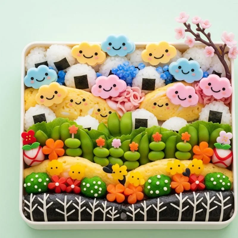 Beyond character representation, Japanese bento artists create entire miniature worlds within lunch containers—complete landscapes with mountains formed from rice, seas of blue-tinted tofu, forests of broccoli trees, and tiny vegetable flower gardens. These edible dioramas transform lunch into explorations of imaginative environments where food components work together to create cohesive scenes rather than merely sitting alongside each other as discrete items. The technical challenges include natural color creation (often using vegetable powders or juices), structural engineering to maintain the landscape during transport, and achieving proper nutritional balance while adhering to aesthetic requirements. Unlike character bentos that typically feature familiar faces, these landscape versions often showcase original creativity—underwater scenes complete with rice "sand" and cheese "coral," countryside vignettes with tofu "houses," or seasonal tableaux celebrating cherry blossoms or autumn leaves. I observed a mother creating a complete Mt. Fuji scene in her daughter's lunch box, using carefully molded purple rice (tinted with butterfly pea flower) for the iconic mountain, surrounded by tamago "clouds" and vegetable "fields"—transforming a practical packed lunch into both nutrition and a connection to cultural heritage that would accompany her child throughout the school day.