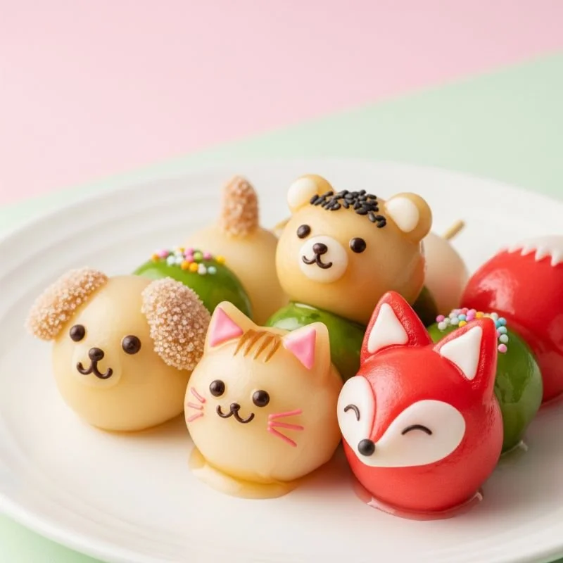 Traditional dango—chewy mochi rice dumplings served on skewers—transform from simple sweets into adorable creatures through creative shaping and decorative techniques that maintain their essential nature while adding personality. Skilled practitioners mold the pliable rice dough into animal shapes—pandas, bunnies, piglets, and bears being particularly popular—then use minimal additional elements like black sesame seeds for eyes, small fruit pieces for details, or natural food colorings to enhance the designs. What makes these particularly charming is how they honor the traditional dango preparation method and flavor profile while adding visual elements that create emotional connection. Unlike some decorative foods that sacrifice taste for appearance, animal dango remain delicious examples of traditional Japanese confectionery with their distinctive chewy texture and subtle sweetness, typically from anko (sweet red bean paste) or kinako (roasted soybean flour). I discovered these at a traditional sweet shop in a Japanese train station, where the elderly proprietor had adapted her family's century-old recipe to include these playful shapes—explaining that while the appearance had changed, the heart of the recipe remained exactly as her grandmother had taught her.