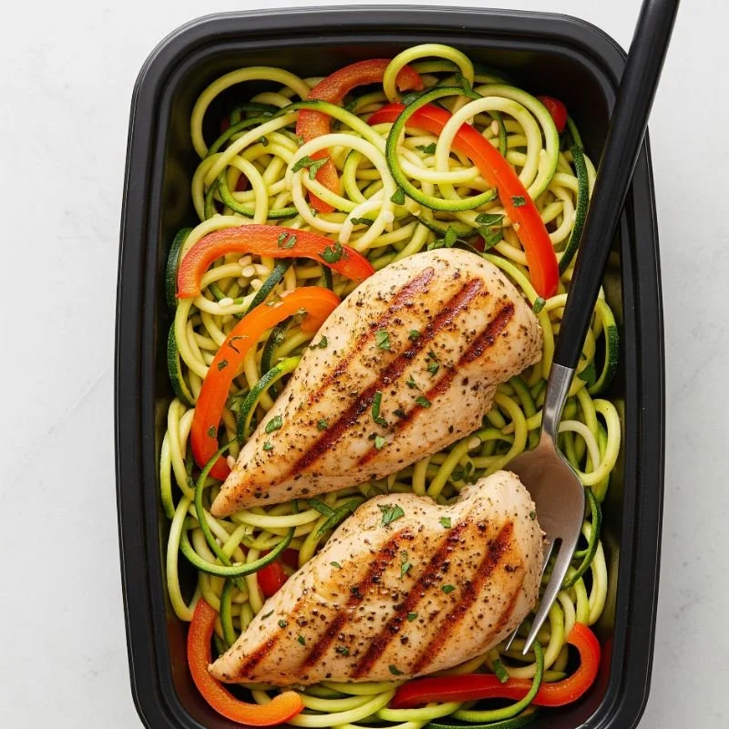 Reimagine pasta dishes with protein-forward, vegetable-based alternatives that deliver approximately 28 grams of protein with just 270 calories per substantial serving. This clever approach uses spiralized zucchini "noodles" as the foundation, topped with lean protein and flavorful sauce for a meal that satisfies pasta cravings without the calorie density of traditional wheat pasta. I prepare components separately during meal prep: seasoning and baking chicken breasts until just cooked through, spiralizing several zucchini (keeping them raw to prevent sogginess), and preparing a flavorful sauce like pesto, tomato basil, or roasted red pepper. During assembly, I place the sauce in the bottom of containers, followed by the sliced chicken, with the zucchini noodles on top, completely separate. This strategic layering prevents the zucchini from releasing moisture into the other components. At mealtime, a quick minute in the microwave warms the chicken and sauce while lightly cooking the zucchini noodles to the perfect al dente texture—no soggy vegetables, just pasta-like satisfaction with a fraction of the calories.