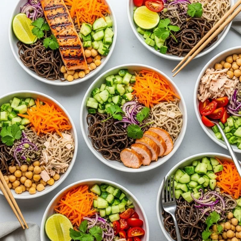 Craft refreshing, no-reheat required meals perfect for warm weather or office lunches without microwaves. These cold noodle bowls deliver approximately 24 grams of protein with just 310 calories per substantial serving. The foundation uses shirataki noodles or edamame pasta—both offering protein advantages over traditional wheat noodles while dramatically reducing calorie content. I prepare a flavor-packed dressing with rice vinegar, lime juice, ginger, garlic, and a touch of sesame oil, then layer ingredients in containers: dressing at the bottom, followed by shredded chicken or tofu, julienned vegetables (carrots, cucumber, bell peppers), and the prepared noodles on top. A small container of chopped peanuts or sesame seeds accompanies each preparation, added just before eating for crunchy texture. These bowls maintain perfect freshness for three days without reheating, making them ideal for scenarios where microwave access is limited. The protein comes from multiple sources—the chicken or tofu primary protein, the edamame pasta if used, and the nut or seed garnish—creating sustained energy without excessive calories or the afternoon slump often associated with heavier lunches.