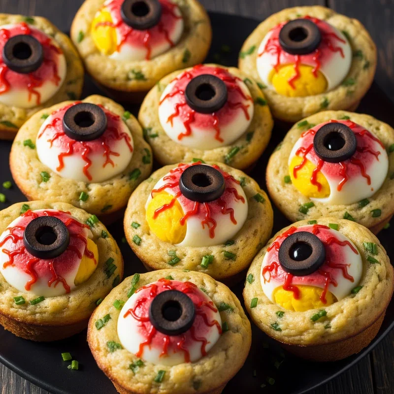 Keep an eye on these protein-packed muffins that stare right back at you! Prepare individual egg muffins in a muffin tin by whisking eggs with milk, salt, and pepper. Before baking, carefully place a cherry tomato half in the center of each cup with the cut side up, creating the iris. Once baked and cooled slightly, add a small dot of cream cheese in the center for the pupil and use sriracha to create bloodshot veins. These grab-and-go breakfast bites are perfect for busy Halloween mornings. You can customize each eyeball with different colored "irises" using various vegetables. Arrange them on a platter so they're all looking in different directions for maximum creep factor. These savory muffins prove that healthy eating doesn't have to be boring when you add a spooky twist!