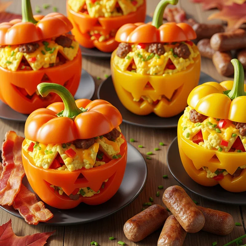 Give traditional stuffed peppers a Halloween makeover that'll light up your breakfast table! Choose orange bell peppers and carefully carve jack-o'-lantern faces into one side before removing the tops and seeds. Fill them with a hearty mixture of scrambled eggs, cheese, crumbled bacon, and diced vegetables. Bake until the peppers are tender and the filling is hot and bubbly. The carved faces allow steam to escape while creating an eerie glow as the filling shows through. These protein-packed pumpkins are not only adorable but also nutritious, sneaking in vegetables while maintaining the Halloween theme. Place them on a bed of spinach "grass" for presentation, and watch faces light up just like your edible jack-o'-lanterns. This recipe proves that Halloween breakfast can be both spooky and sophisticated!