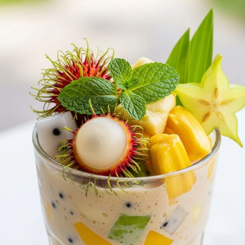 In Vietnamese cities, street vendors blend sinh tố with theatrical flair, transforming fresh tropical fruits into velvet-textured beverages that make America's smoothie chains seem like clumsy approximations of the real thing. Unlike their Western counterparts that often rely on frozen ingredients, dairy, and added sweeteners, traditional sinh tố showcases fruit at the peak of ripeness—typically avocado, mango, soursop, jackfruit, or dragonfruit—blended with just enough condensed milk to enhance natural sweetness without overwhelming it. The resulting beverage delivers remarkable nutritional density with a texture so luxurious it feels like an indulgence rather than a health food. The avocado version (sinh tố bơ) deserves special mention for its ingenious transformation of a fruit Westerners consider savory into a dessert-like experience that delivers heart-healthy monounsaturated fats. These smoothies provide a perfect example of Vietnamese cuisine's approach to sweet treats—using nature's own sugars as the primary sweetener, adding just enough additional sweetness to enhance rather than mask the main ingredient. I often recreate these at home as an energizing breakfast that provides steady fuel rather than the spike-and-crash of many Western breakfast options.