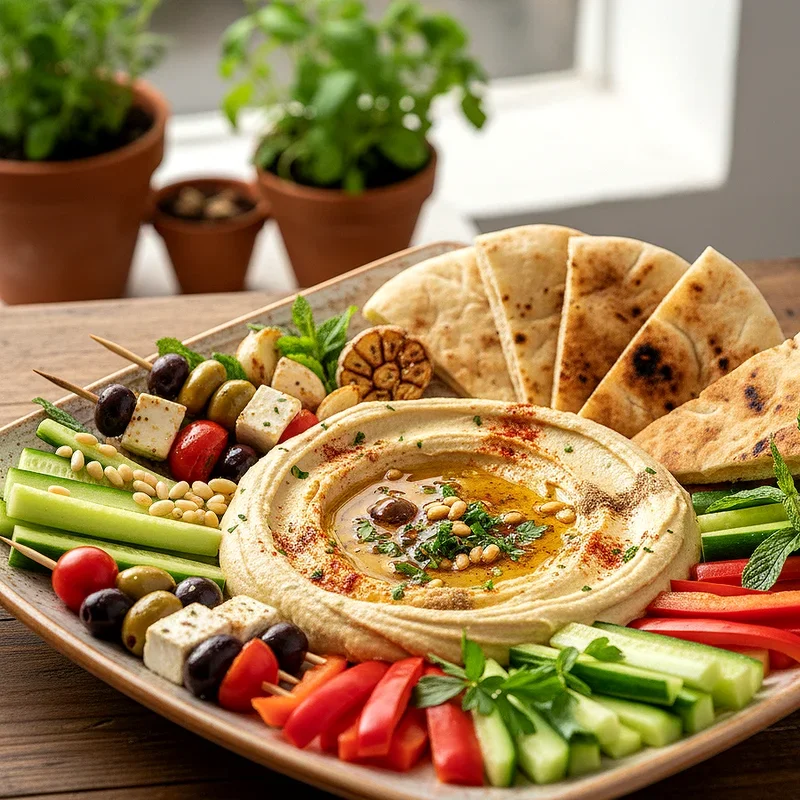 A well-composed hummus platter brings healthy, flavorful options to your spread while accommodating vegetarian and vegan guests effortlessly. You arrange store-bought or homemade hummus in a shallow bowl, creating a well in the center for olive oil that you drizzle generously. Top with chickpeas, pine nuts, paprika, and fresh herbs for visual appeal and added texture that elevates basic hummus into something special. Surround your centerpiece with warm pita bread, crunchy vegetables like carrots and bell peppers, and perhaps some cucumber rounds for lighter dipping options. The protein-rich chickpea base provides sustenance without weighing people down during your celebration. This Mediterranean-inspired offering adds international flair to your menu while remaining budget-friendly and preparation-friendly for busy hosts who want impressive results with minimal stress.
