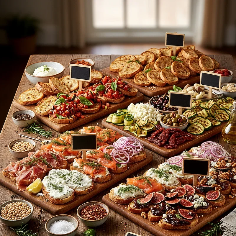 Setting up a build-your-own bruschetta station gives guests creative control while showcasing fresh, vibrant flavors that celebrate your new home. You start with perfectly toasted baguette slices that provide a sturdy base, then offer multiple topping options in attractive bowls. Classic tomato-basil mixtures sit alongside options like white bean puree, roasted red pepper tapenade, and mushroom duxelles. Fresh herbs, quality olive oil, and aged balsamic vinegar serve as finishing touches that guests drizzle according to their preferences. This interactive approach encourages conversation as people share their favorite combinations and experiment with new flavor pairings. The visual appeal of colorful toppings arranged buffet-style creates an inviting focal point that draws guests in and sparks their culinary creativity throughout the evening.