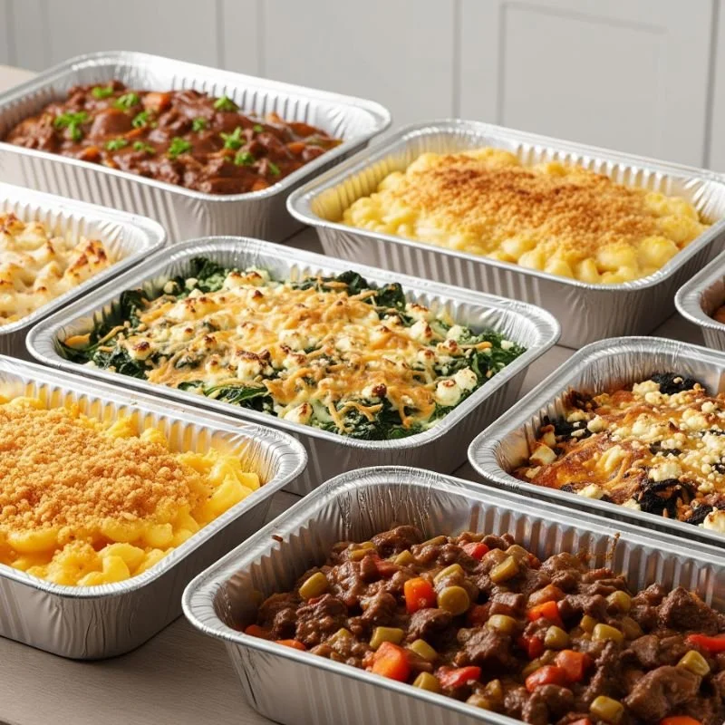 A: Choose disposable aluminum pans, sturdy takeout containers, or clearly labeled returnable dishes.