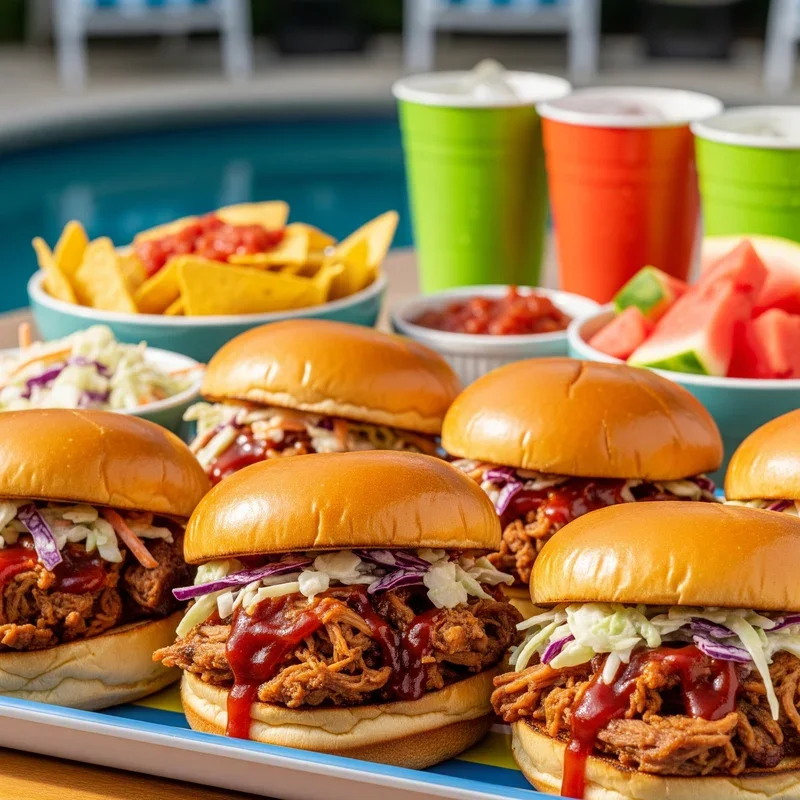 Slow-cooked pulled pork sandwiches bring comfort food appeal to your pool party with minimal effort thanks to the magic of your slow cooker doing all the work. Season a pork shoulder with your favorite spice rub, let it cook low and slow until it falls apart, then shred and mix with tangy barbecue sauce for irresistible sandwiches. Set up a sandwich station with soft buns, coleslaw, pickles, and various barbecue sauces so guests can customize their perfect bite according to their taste preferences. The tender, flavorful meat satisfies even the heartiest appetites while the make-ahead nature means you're not stuck cooking while everyone else enjoys the pool. These sandwiches reheat beautifully, making them ideal for parties that stretch into the evening hours.