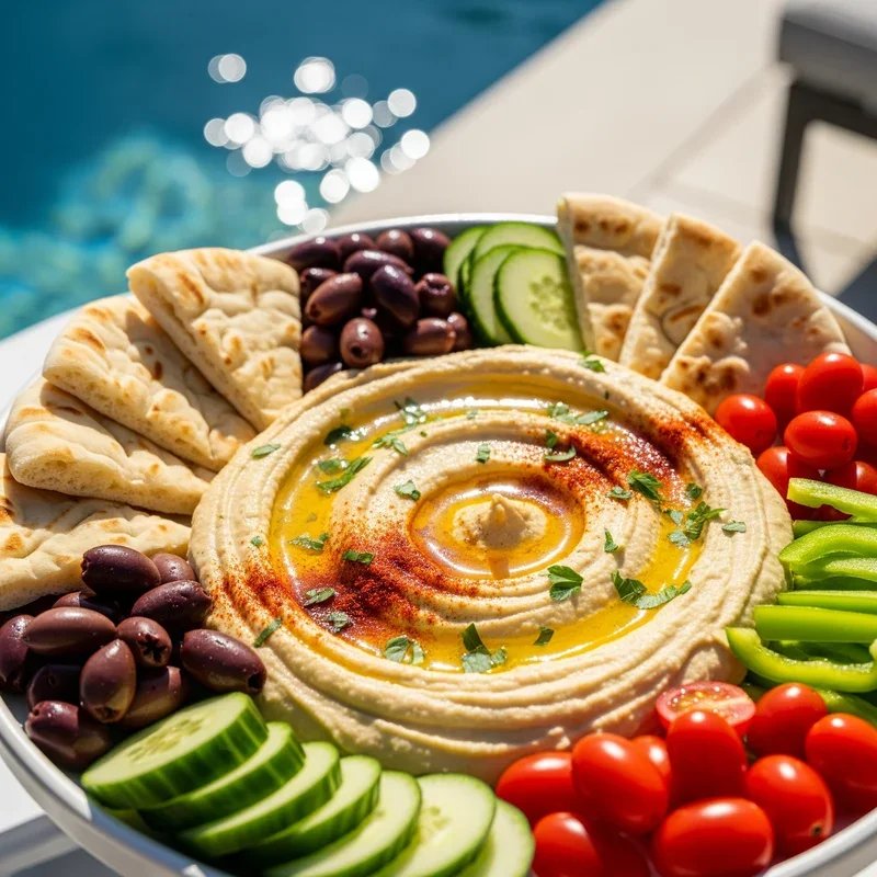 Create a stunning centerpiece with a Mediterranean hummus platter that brings together fresh vegetables, warm pita bread, and creamy hummus in a colorful, healthy spread. Arrange different hummus flavors like classic, roasted red pepper, and garlic alongside crisp vegetables, olives, and feta cheese for a diverse array of flavors and textures. This vegetarian-friendly option ensures everyone has something delicious to enjoy while providing lighter fare that won't weigh down active swimmers throughout the day. The combination of protein-rich hummus and fresh vegetables offers sustained energy without the crash that comes from heavy, greasy foods. Set up your platter on a large board or tray for an Instagram-worthy presentation that doubles as edible art for your party table.
