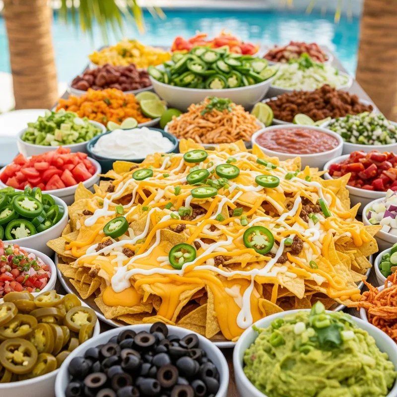 Transform the simple pleasure of nachos into an interactive dining experience by setting up a DIY nachos bar that lets guests customize their perfect plate. Start with sturdy tortilla chips as your foundation, then offer an array of toppings like seasoned ground beef, shredded chicken, black beans, melted cheese sauce, fresh salsa, guacamole, sour cream, and jalapeños. This setup eliminates the soggy chip problem that plagues pre-assembled nachos while giving everyone control over their flavor combinations and spice levels. Place the hot ingredients in slow cookers or warming trays to maintain the perfect temperature throughout your party without constant trips to the kitchen. The self-serve nature means you can relax and enjoy the festivities while guests happily build their own nacho masterpieces.