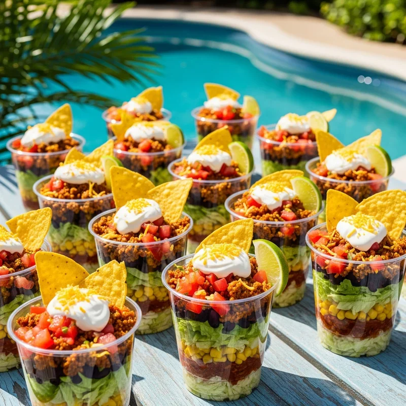 These individual taco salads served in crispy tortilla bowls combine all your favorite Mexican flavors in a convenient, portable package perfect for poolside dining. Layer seasoned ground beef or turkey, lettuce, tomatoes, cheese, sour cream, and salsa in edible tortilla cups that eliminate the need for plates and utensils. The single-serving format prevents the soggy bottom syndrome that plagues traditional taco salads while giving each guest their own perfectly proportioned meal. You can prepare the meat and chop the toppings ahead of time, then assemble the cups just before serving to maintain maximum crunchiness and freshness. These handheld delights satisfy hearty appetites while keeping the mess to a minimum, making cleanup a breeze when the party winds down.