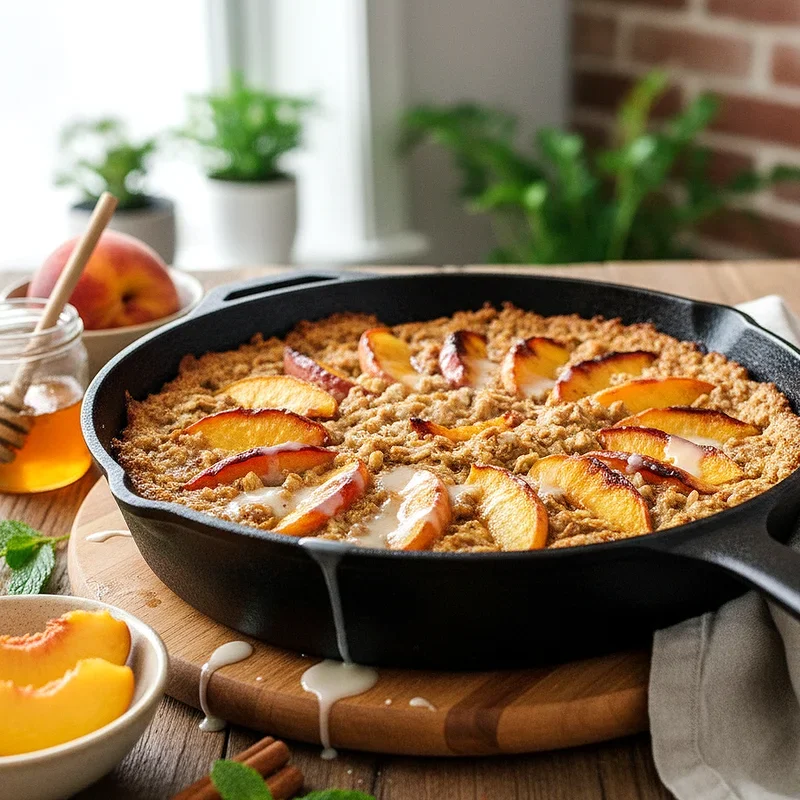 Peach cobbler baked oatmeal transforms healthy breakfast grains into something that tastes like dessert while still providing lasting energy. Rolled oats bake with fresh or frozen peaches, cinnamon, brown sugar, and milk until the mixture sets into a cake like consistency that slices beautifully. A crumbly topping made with butter, oats, and pecans adds textural contrast and extra sweetness that mimics traditional cobbler. This dish captures summer's essence in every spoonful, with juicy peaches bursting throughout the tender oatmeal base. The beauty lies in its dual nature, it's wholesome enough for breakfast yet indulgent enough to satisfy sweet tooth cravings. Serve it warm with a dollop of Greek yogurt or a splash of cream for added richness.