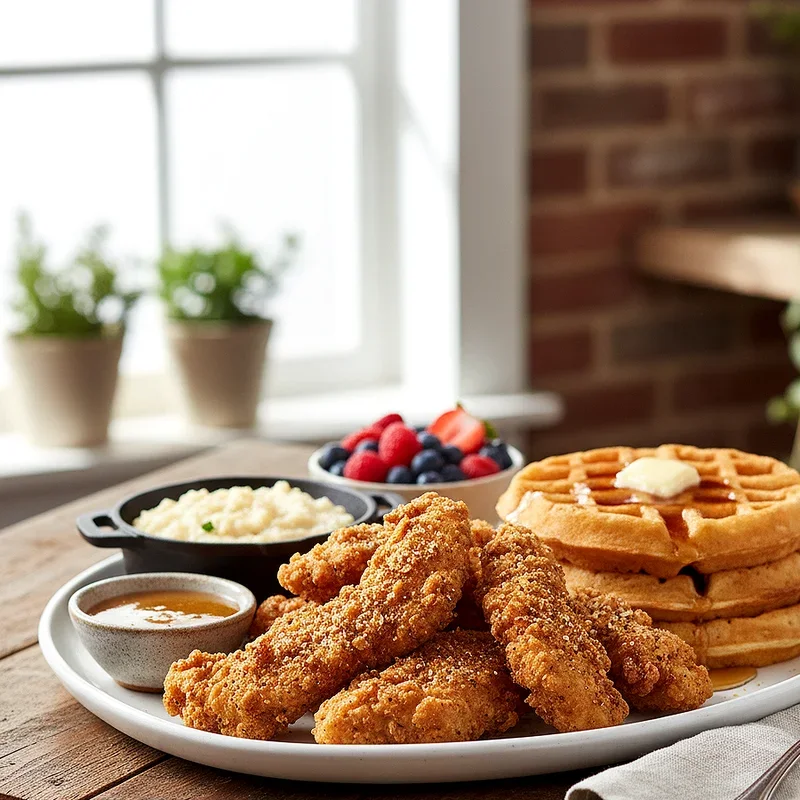 Chicken and waffles brings together sweet and savory in a combination that might seem unusual but delivers pure magic on your plate. Crispy fried chicken, seasoned with a blend of spices and buttermilk marinated for tenderness, sits atop fluffy waffles made with a hint of cornmeal for authentic Southern texture. The contrast between the crunchy coating, juicy chicken, and soft waffle creates layers of flavor and texture that dance across your palate. Drizzle everything with warm maple syrup infused with hot sauce for a finishing touch that ties the dish together perfectly. This brunch option has roots in Harlem's jazz clubs but has been embraced throughout the South as a weekend favorite. Whether you serve it for brunch or any meal, this combination proves that sometimes the best recipes come from thinking outside traditional boundaries.