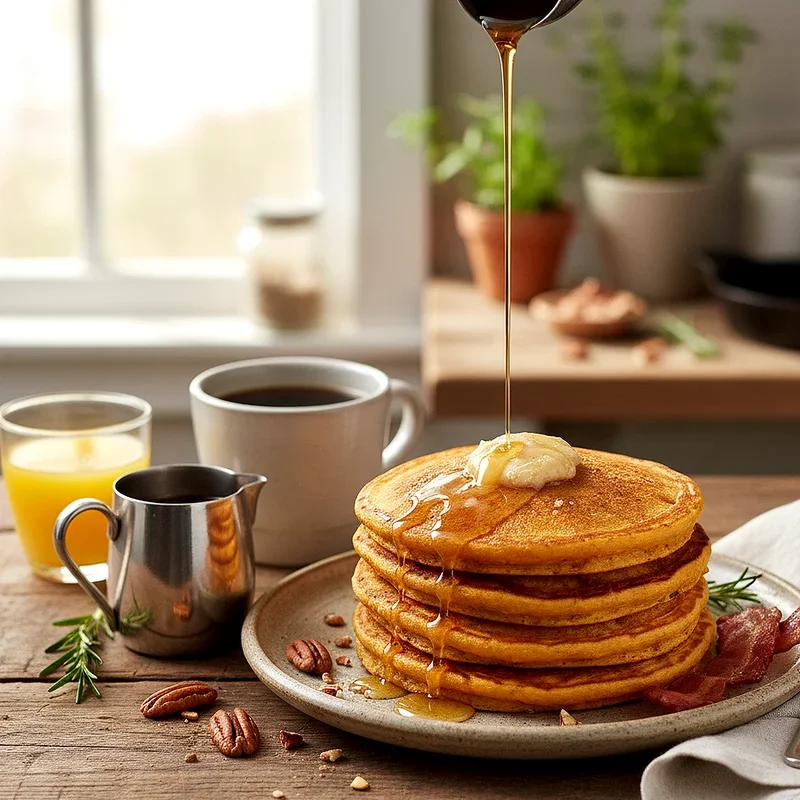 Sweet potato pancakes bring earthy sweetness and vibrant color to your brunch table while sneaking in extra nutrition. Roasted sweet potato puree folds into traditional pancake batter along with warm spices like cinnamon, nutmeg, and ginger that complement the potato's natural sugars. The result is fluffy pancakes with a gorgeous orange hue and complex flavor that goes beyond typical breakfast fare. Maple butter, made by whipping softened butter with pure maple syrup and a pinch of salt, melts into pools of sweet richness on top of each stack. These pancakes represent Southern cooking's ability to incorporate vegetables into unexpected places while keeping things delicious. Serve them with crispy bacon on the side to balance the sweetness with something savory.