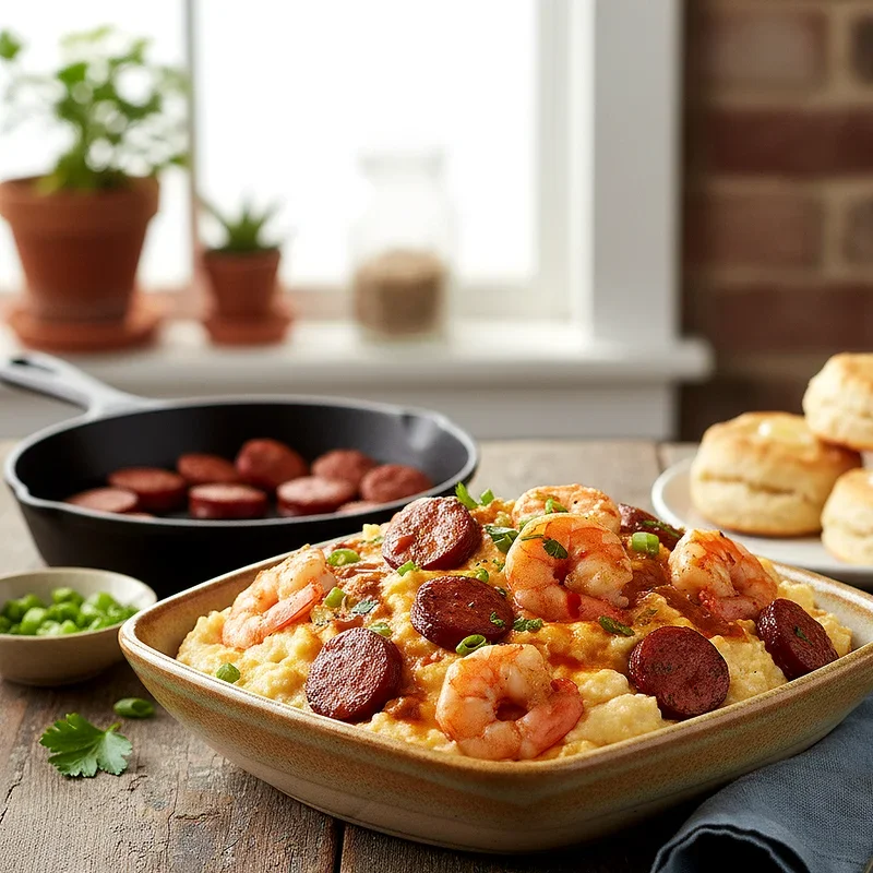 2. Shrimp and Grits with Andouille Sausage