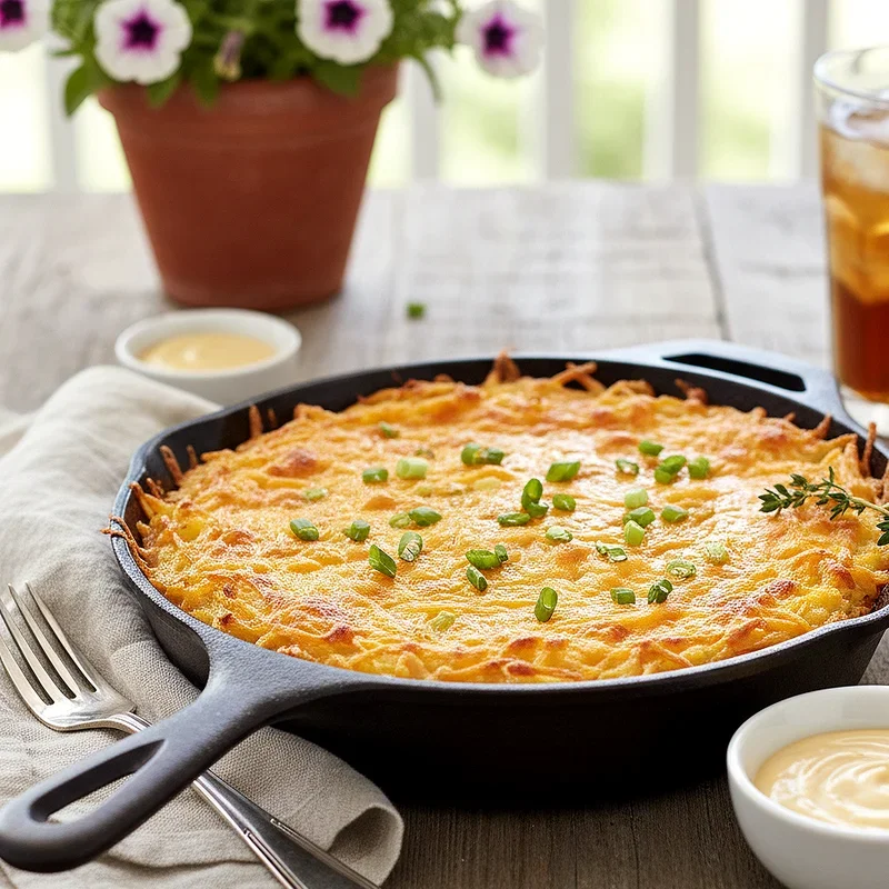 Hash brown casserole delivers crispy topped, creamy centered potato perfection that makes meal planning easier for busy hosts. Shredded potatoes mix with sour cream, cream of chicken soup, sharp cheddar cheese, and butter before being topped with crushed cornflakes for that essential crunch. The casserole bakes until the edges turn golden and crispy while the interior becomes tender and infused with cheesy, oniony flavor. This make ahead friendly dish has graced church potlucks and holiday tables throughout the South for generations because it feeds many and pleases all. The combination of textures from crispy top to creamy middle to tender potato makes every forkful satisfying. Pair it with eggs and bacon for a complete brunch spread that requires minimal morning effort.