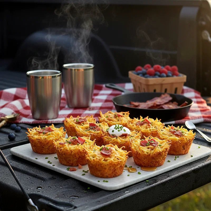 Transform frozen hash browns into crispy vessels by pressing seasoned shredded potatoes firmly into greased muffin tins before baking. You fill these golden cups with scrambled eggs mixed with cream cheese for extra richness, then top with crumbled bacon and shredded cheese. The individual portions eliminate serving spoons and plates, making these perfect for crowded parking lot gatherings where table space doesn't exist. Customize each cup with different toppings like diced ham, green onions, or hot sauce to accommodate various preferences within your group. These portable beauties maintain their crispiness even after sitting, unlike traditional hash browns that become soggy quickly. Prepare them completely at home and reheat wrapped in foil on-site for maximum convenience without sacrificing quality.