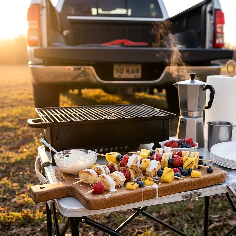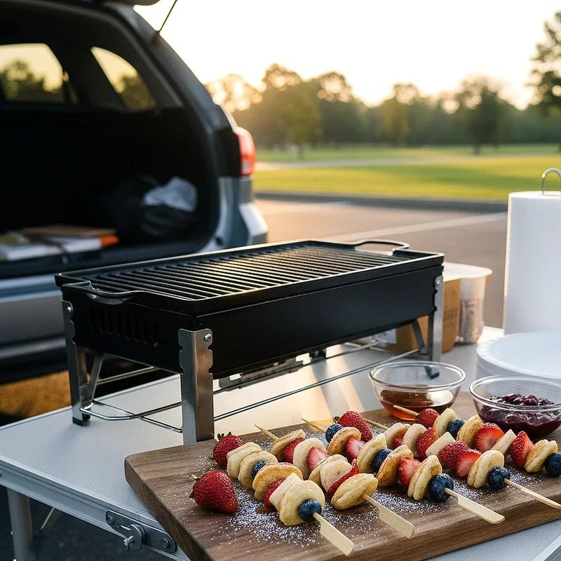 Create Instagram-worthy breakfast kabobs by threading silver dollar pancakes with fresh berries and breakfast sausage rounds onto wooden skewers. You prepare mini pancakes at home using a Swedish pancake pan or by dropping tablespoon-sized batter portions onto a griddle. Alternate pancakes with strawberry halves, blueberries, and cooked sausage pieces to create colorful patterns that appeal to eyes and taste buds equally. Dust the assembled skewers with powdered sugar and serve alongside maple syrup or honey for dipping. These playful presentations turn basic breakfast into an interactive experience that gets everyone excited about morning tailgating. The sweet and savory combination satisfies all cravings while providing portable nutrition that doesn't require plates or complicated serving arrangements.