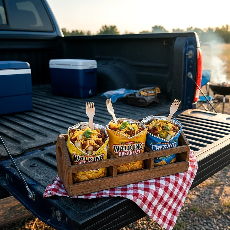 Walking breakfast tacos revolutionize traditional morning fare by using individual Fritos bags as edible bowls for your breakfast ingredients. You slice open chip bags lengthwise, adding layers of fluffy scrambled eggs, crumbled sausage, melted cheese, and fresh pico de gallo directly inside. The warm ingredients slightly soften the corn chips while maintaining that satisfying crunch everyone craves in the morning. Guests grab a plastic fork and enjoy their portable feast while keeping hands free for beverages and high-fives. This genius hack eliminates plates entirely, reducing cleanup time when you'd rather be socializing with fellow fans before kickoff. Add optional toppings like avocado chunks, sour cream, or hot sauce to let everyone customize their walking taco experience.